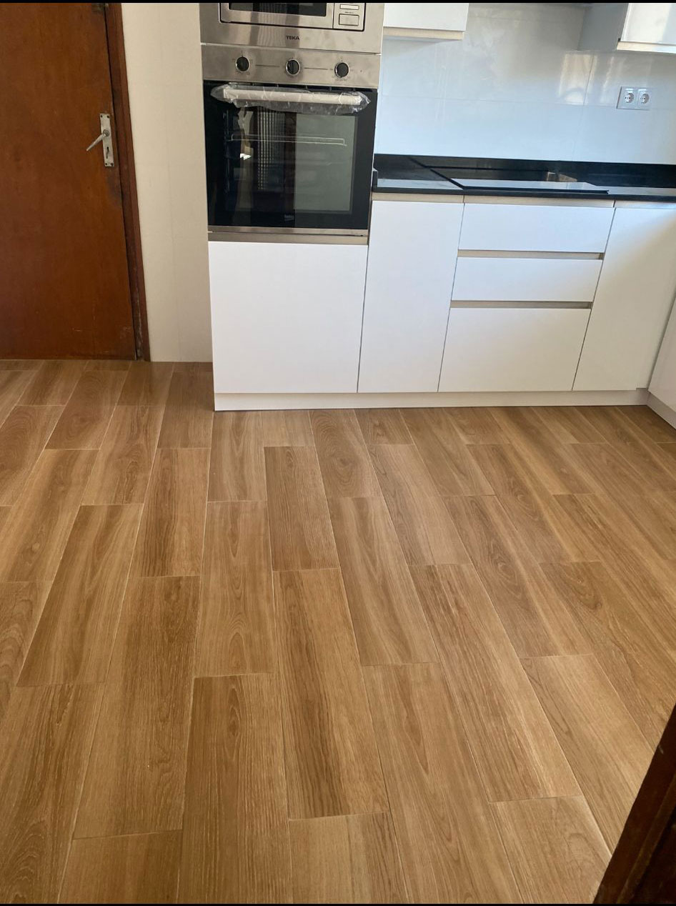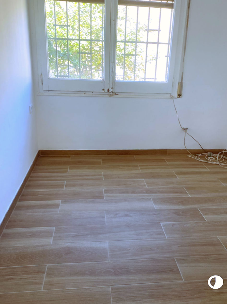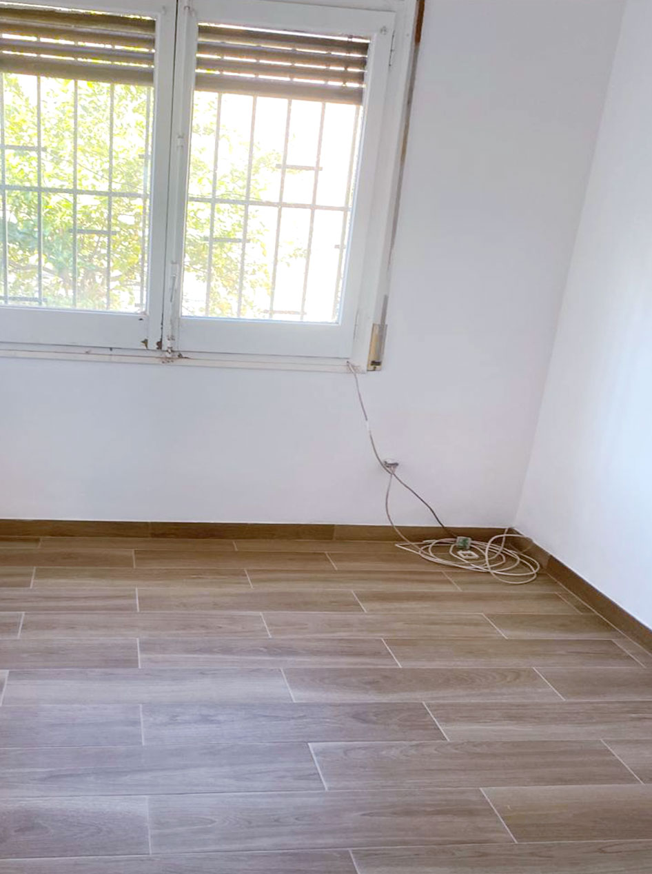 - Cambio de suelos: Instalamos parquet laminado de alta resistencia en toda la casa, consiguiendo un acabado cálido y acogedor.